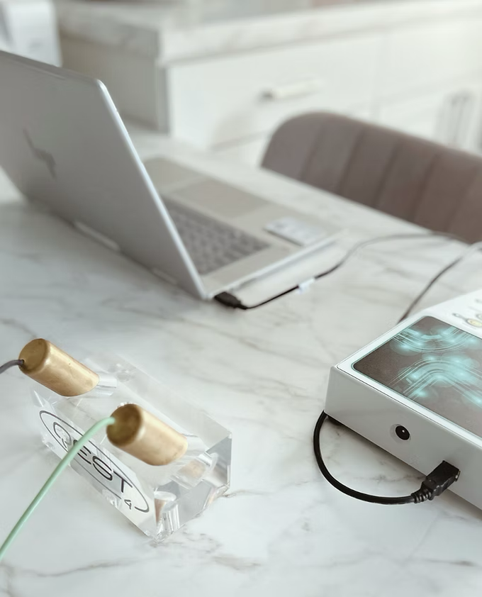 The QEST4 Bioenergetic Health System is a cutting-edge, non-invasive technology designed to assess and support holistic wellness by evaluating the body’s energetic imbalances. Using painless handheld electrodes or remote DNA samples, the QEST4 scans the body’s response to thousands of energetic signatures, identifying stressors such as toxins, nutritional deficiencies, hormonal imbalances, or emotional patterns. This bioenergetic testing, grounded in principles of homeopathy and quantum physics, provides a comprehensive snapshot of health. When you choose to work with me, you won’t simply get your test results but I include a personalized wellness action plan tailored to your individual needs, promoting natural healing without invasive procedures, targeting remedies to restore balance and vitality. Because bioenergetic scanning bridges traditional and holistic health practices, offering insights that complement standard diagnostics, clients often report improved energy, better sleep, and relief from chronic issues like fatigue, digestive problems, joint pain, or allergies. By focusing on root causes rather than symptoms, it empowers proactive health management, making it an invaluable tool for wellness practitioners and clients seeking a deeper understanding of their body’s unique needs.